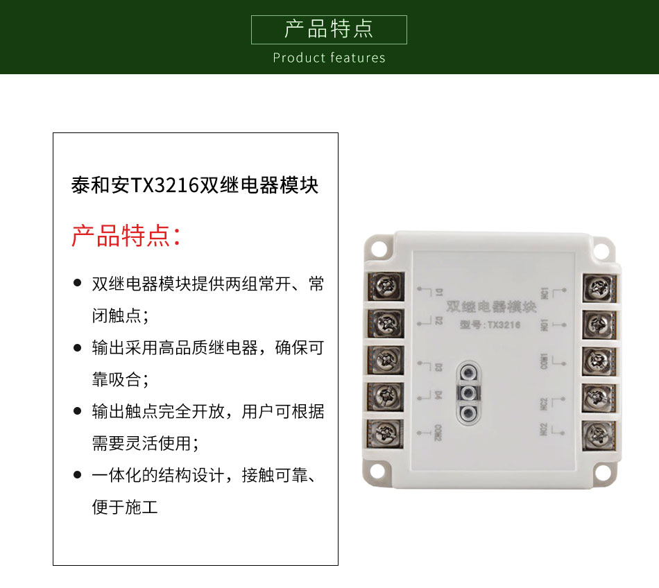TX3216雙繼電器模塊提供兩組常開、常閉觸點(diǎn);