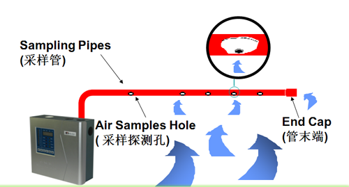 吸氣式感煙火災(zāi)探測器跟傳統(tǒng)的(點型)煙霧探測器有所不同。空氣采樣系統(tǒng)由在天花板上方或下方每隔幾米平行安裝的管道組成。在每根管子的上面,每隔幾米就鉆有一個小孔,這些小孔很均勻的在天花板上分布,這樣就形成了一組矩陣型的空氣采樣孔。利用探測主機內(nèi)部抽氣泵所產(chǎn)生的吸力,空氣樣品或煙霧通過這些小孔被吸入管道中并傳送到達(dá)探測主機內(nèi)部的高靈敏度煙霧探測腔檢測空氣樣品中的煙霧顆粒濃度,可實現(xiàn)未現(xiàn)火苗時提前報警,以達(dá)到在損失未發(fā)生時就已扼殺在搖籃中。