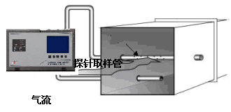 風道內(nèi)取樣,可以通過將取樣管橫向沿風道的中心線穿過風道的全寬度來完成。在這種特殊的應用中,取樣管道通常稱為“探針”。(見圖7)。