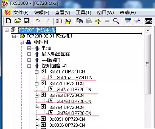 在調(diào)試軟件上看,每一個(gè)感煙探測器OP720下面都有一個(gè)通道,如圖