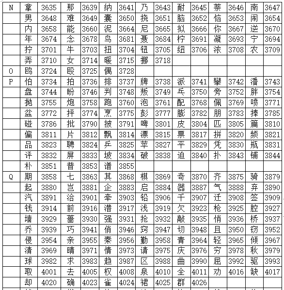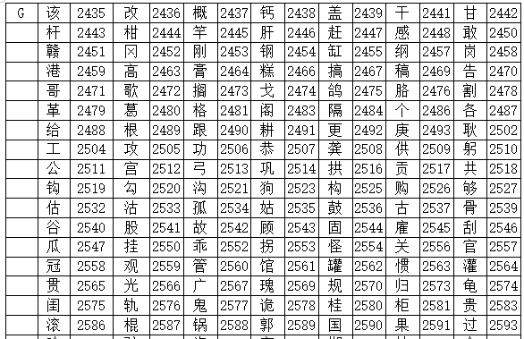 海灣gst5000消防主機(jī)字根表
