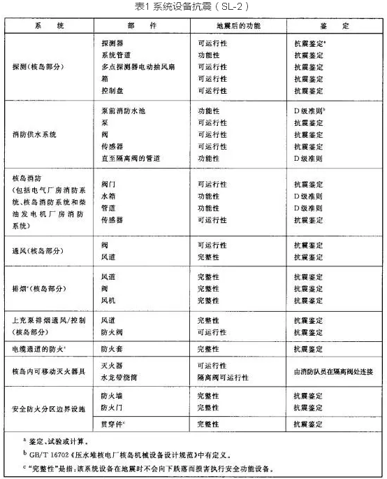 核電廠的火災(zāi)自動(dòng)報(bào)警系統(tǒng)需滿足相關(guān)質(zhì)保等級(jí)的要求并且系統(tǒng)在運(yùn)行階段要接受定期試驗(yàn)檢查,另外,所有設(shè)備應(yīng)經(jīng)過抗震試驗(yàn)鑒定并能承受極限安全地震(SL-2)荷載,且保證其可運(yùn)行性(見下表1)。