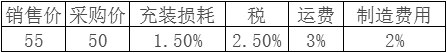 那么,我們真的沒有一個相對簡單容易操作的辦法來大致分辨產(chǎn)品質(zhì)量嗎?我認為是有的,拿藥劑來說吧,如果藥劑廠商出廠價假設(shè)是50元每公斤,設(shè)備廠家銷售價格是55每公斤,那么藥劑可能是真藥劑且按設(shè)計要求充裝嗎?作為專業(yè)人士我給大家作個簡單計算,見下表